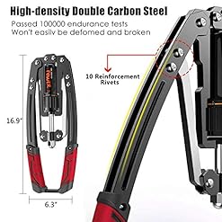 This hydraulic power twister has a component of high-density steel that also has a dual carbon finish. Do as much of chest and tricep workout bodybuilding you want; this metallic baby will not break or deform easily. It is reinforced with a ribbed design & 10 screws; this equipment is a total beast. Even if it has a simple structure & reliable operation, the core is a fully sealed hydraulic cylinder. The engineering plastic & PU soft rubber coating makes it so strong that it will not break with the upcoming time. It has a triangular design for stability & adjustable option. The twister measures 2 x 16.9 x 6.8 inches.