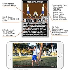 EASIEST WAY TO LEARN DUMBBELL EXERCISES: Each card has an illustration and description that explains how to perform the exercise. Scan the QR code with a smartphone or tablet to watch a quick video demonstration of the exercise.