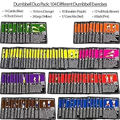 Dumbbell Stack 52 contains 55 cards. There are 8 colors with each color representing the dominate muscle group worked. The Dumbbell Duo Pack contains 110 cards.