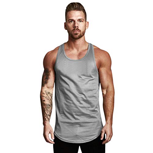 【Clothing Features】: Men’s T-Shirt Breathable Bodybuilding Ves, sleeveless, mesh, solid color, especially suitable for sports and fitness, let your movement unfettered.