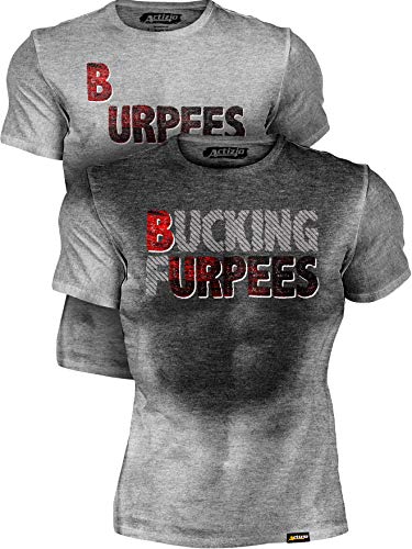 Actizio Sweat Activated Technology Motivational Workout Shirt, Burpees – Bucking Furpees (Athletic Heather