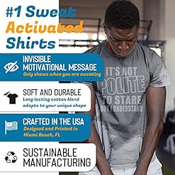 Sweat Activated T Shirt with Motivational Hidden Message It’s Not Polite to Stare for Men Grey