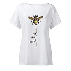 Features: Women Bee Graphic Tee with Sayings Let It Bee,Novelty Funny Letter Print Shirt,Off the Shoulder Tops for Women,Casual Loose Fit Style, Cute Basic T Shirts Tops.