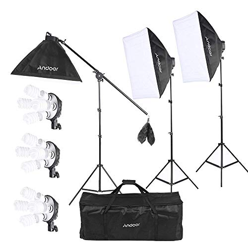 Andoer 2400W Lighting Kit, Photography Studio Continuous Softbox Lighting System Including 12X45W 5500K LED E27 Bulbs…