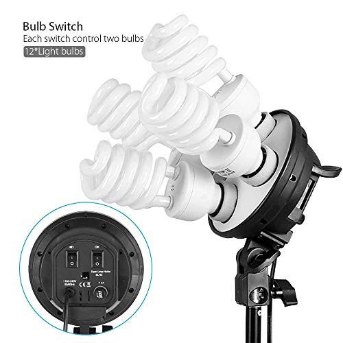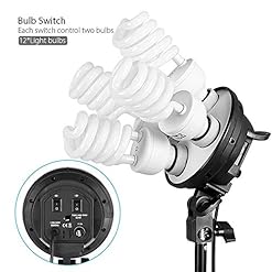 ?45W professional photography lighting bulbs, 5500k color temperature daylight balanced fluorescent floodlights provide cool, white continuous lighting; suitable for any light holder with E26/E27 socket. 4in1 bulb socket allows you to install 4 bulbs in only one socket, 2 control switches allow you to create different brightness.