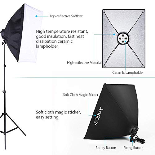 ?20inch x 28inch softbox helps create even and diffused light, soften light stream and remove shadow to make perfect shooting; moreover, it will reduce overexposure and hot spots; This backdrop and lighting kit perfect for any object’s shooting.