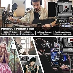 Gvm 560as LED light is a professional photo and video LED light with a slim aviation aluminum body that is light and simple. The high quality LED bulbs life can reach 70, 000 hours.