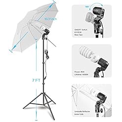 Contents: 1 x Backdrop Stand support system / (2) x Muslin Backdrop / 2 x 86″ Light Stand/ 4 x Multifunctional Clips Holder / 2 x Black Reflector Umbrella / 2 x White Translucent Umbrella / 2 x Light Holder / 2 x 45W Energy Saving Bulb / 1 x Convenient Carry Bag