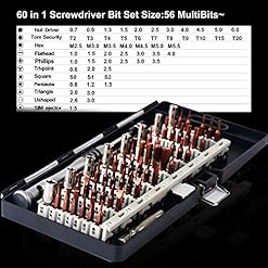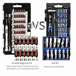 HIGH QUALITY MATERIAL: 56 magnetic screwdriver bits made with high quality S2 stainless steel material. It’s hardness can reach over HRC62°, which is harder than the CRV-material and more durable, all of standard size bit undergo the rigorous quality control testing, the tip is stable and not easily stripped. Anti-slip metal spudgers are made of sturdy stainless steel and nylon fiber spudgers.