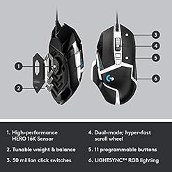 High performance hero 16k sensor: Logitech most accurate sensor yet with upto 16,000 dpi for the ultimate in gaming speed, accuracy and responsiveness across entire dpi range