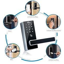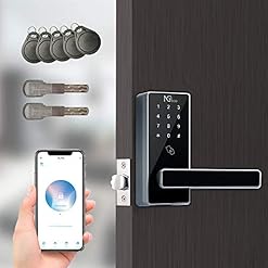 ?【Multiple Ways to Unlock】:5-in-1 keyless entry door lock enable you to unlock your door with NFC,phone APP,password,card and physical key.Never hid a key again, create temporary or permanent virtual keys for the people you trust. Delete keys anytime