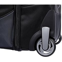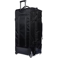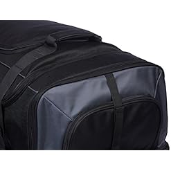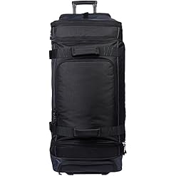 Wheeled duffel in black with grey accents for traveling in comfortable, convenient style