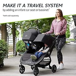 The Baby Jogger City Mini Gt2 double stroller is now in an updated design with Forever air rubber tires and all-wheel suspension for uncompromised agility on any terrain with two. Features include a one-step in-seat fold, adjustable handlebar, and hand-operated parking brake.