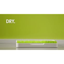 PORTABLE DRYING RACK: Grass blades hold items upright for drying while excess water collects in bottom tray and air vent facilitates drying