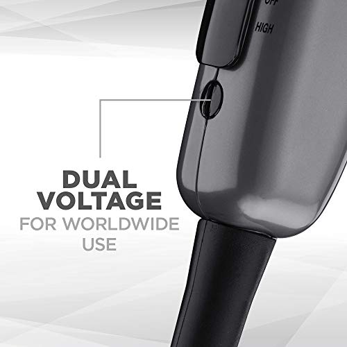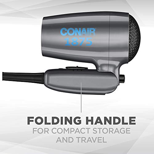 The Conair 1875 Watt Compact Folding Handle Hair Dryer (also makes great Travel Hair Dryer) is conveniently transportable, compact and equipped with dual voltage for worldwide travel. Powerful enough to style hair on the go, this hair dryer features a full 1875 watts for fast drying. This styling tool has a folding handle that makes it easy to pack in a suitcase, or store in a drawer. Complete with 2 heat/speed settings to customize your hair drying experience, and 5 foot cord, it also has a cool shot button to lock in your finished style. Dual voltage lets you use this dryer at home and globally abroad.