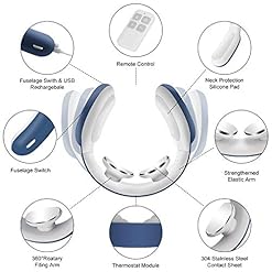 ▶Easy to Use: Wipe the neck and the 2 metal pads with wet washcloth before you use this neck massager. Press the button for 3 seconds to start, Press the “heat” mode to turn on/off heated mode. Press the”mode” button to change mode, Press The “+” or “-” to adjust the massager strength