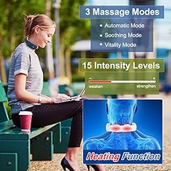 ▶Best Massage Experience: Pulse heated neck massage, 107.6ºF constant temperature fomentation, there are 3 different modes and 15 kinds of strength to meet your needs. The neck massager can simulate real human massage to promote blood circulation, relive your neck pain, active tissue cells, relieve shoulder tiredness and finally relax your whole body