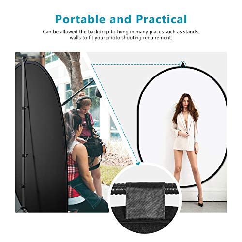 PACKAGE CONTENTS: (1)5×6.5ft/ 150x200cm Black & White collapsible backdrop, (1)carry bag