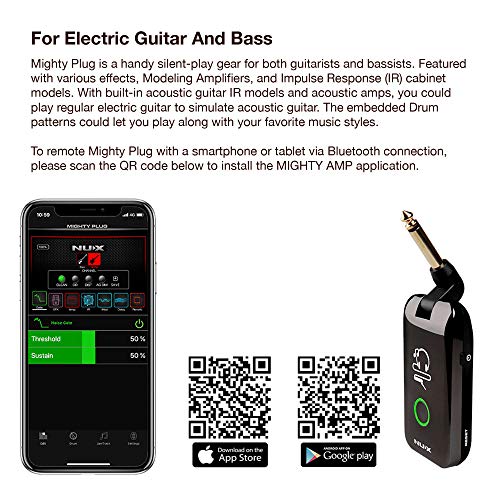 NUX Mighty Plug MP-2 Guitar and Bass Modeling Headphone Amplug with Bluetooth,13 Amplifier Models,20 IR,19 Variety of…