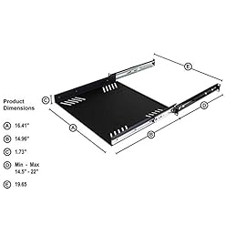 This low profile sliding tray with universal equipment fixing points is a great alternative to standard rack shelves. Features fully adjustable front and rear racking ears to compensate for mounting in racks ranging from 14-1/2″ to 22″ deep and ball bearing sliders. Occupies one rack space (1U).