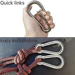 Widely Used in Outdoor& Indoor:Our snap hooks is perfect for indoor/outdoor. It can be used in many ways such as climbing ropes connected,boating,sailing,camping,fishing,hiking,travelling,home gym,weight lifting machine, and various. Large carabiner is widely used in wherever.