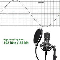 –PROFESSIONAL SOUND CHIPSET 192kHz/24bit: This Condenser Microphone has been designed with professional sound chipset, which let the USB microphone hold high resolution sampling rate. SAMPLING RATE: 192kHz/24bit!!! The smooth, flat frequency response of 30Hz-16kHz–Extended frequency response is excellent for singing, speech and Voice over, Performed perfectly in reproduces sound, high-quality mic ensure your exquisite sound reproduces on the internet