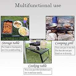 ★Material: This camping table is made of iron with a layer of paint on the surface, which is durable and heat resistant. Do not put food directly on the table to bake.