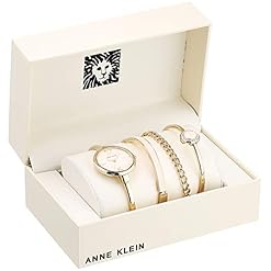 Anne Klein Women’s Bangle Watch and Premium Crystal Accented Bracelet Set