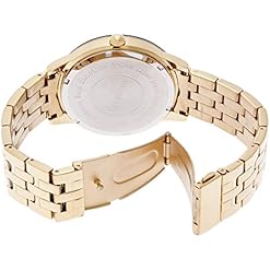 Gold-tone stainless steel band with fold-over clasp featuring double push-button safety closure