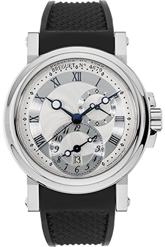 Breguet Marine Dual Time Silver Dial Black Rubber Mens Watch 5857ST/12/5ZU