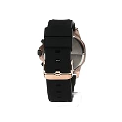 - Three-hand analog display with quartz movement, three sub-dials and date display window.