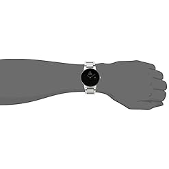 - Featuring a black dial with silver-tone hands, stick marker at twelve o’clock, logo and date window.