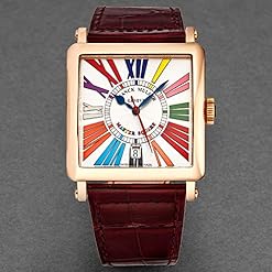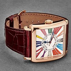 Franck Muller Women’s 6000HSCDTCDR5NN ‘Master Square’ Silver Dial Colored Numerals Wine Leather Strap 18K Rose Gold…