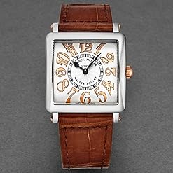 Franck Muller Women’s 6002LQZRLFVGACR ‘Master Square’ Silver Dial Brown Leather Strap Swiss Quartz Watch