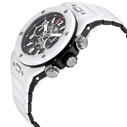 Chronograph/Stopwatch functions: Column wheel chronograph. Features a “Flyback” function, which allows instant restarting of the chronograph with a single push of the button instead of the need to stop, reset & then restart the stop-watch. Large red central seconds counter. 60 minute counter sub-dial located at the 3 o’clock position.