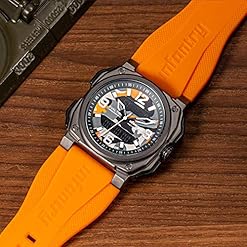 【TOUGH and DURABLE】 Anti-Scratch K1 Minerial Glass Top, Brass Watch Case, 314L Stainless Steel Case Back, PVD Case Coating, Heavy Duty Soft Rubber Band.