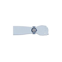 Blue and Silver dial enhanced by silver-tone hands. Silver-tone stainless steel case with a silver-tone and blue stainless steel and carbon fiber band. Quartz movement. 100 meters / 330 feet water resistance. Fixed bezel. Flame Fusion crystal. Solid caseback. Fold Over clasp. Pull / Push crown. Case size 52 mm. Band 32 mm x 7.25 incheslong. Invicta 32281 Bolt Watch.