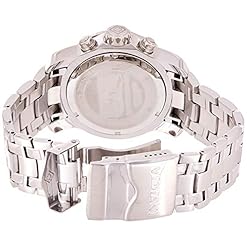 Uncompromising in its bold stature, the Invicta Men’s Pro Diver Collection Stainless Steel Watch is a jewel worthy of the deep sea. Produced on brushed and polished stainless steel metal, the broad case is richly complemented by the bracelet with fold-over clasp safety. An oversized unidirectional bezel is detailed with black Arabic numerals and dot markers. The durable flame-fusion crystal window covers the striking silver analog dial, protecting the assortment of three chronograph subdials and magnified date window. Featuring luminous gunmetal hands, the dial also boasts an outer ring seconds marker and luminous circular indices at each hour position.