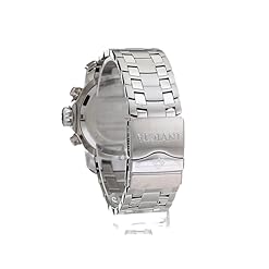 Japanese quartz movement Durable flame-fusion crystal; brushed and polished stainless steel case and bracelet Chronograph functions with 60 second, 30 minute and 12 hour subdials; date function Silver dial with gun metal hands and hour markers; luminous; unidirectional bezel; magnified date window Water-resistant to 660 feet (200 M)