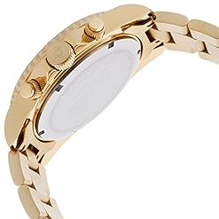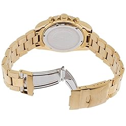 Polished gold-tone bracelet watch featuring blue luminous dial and chronograph functions with 60-second/60-minute/one-tenth second subdials