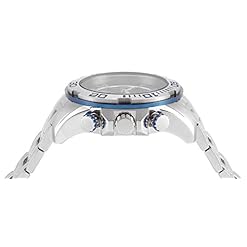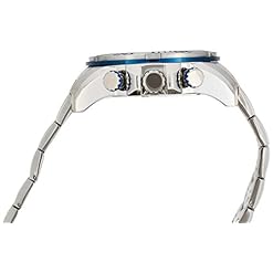 Blue Dial with Silver Tone and White Hands and Hour Markers; Luminous; Stainless Steel Bezel with Blue Ion-Plated Stainless Steel Rim; Flame Fusion Crystal; Stainless Steel Case and Bracelet