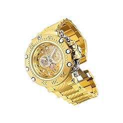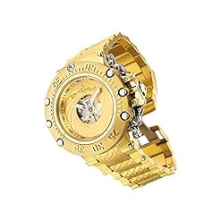 Gold and Silver dial enhanced by silver-tone hands. Two-tone (Silver-tone and Gold-tone) stainless steel case with a gold-tone stainless steel band. Quartz movement. 200 meters / 660 feet water resistance. Uni-directional Rotating bezel. Flame Fusion crystal. Solid caseback. Fold Over clasp. Screw Down crown. Case size 52 mm x 18.6 mm. Band 27.3 mm x 9 incheslong. Invicta 32950 Subaqua Watch.