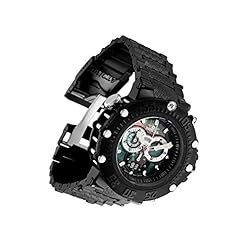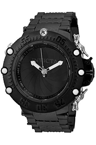 Black and Silver dial enhanced by silver-tone hands. Black stainless steel case with a black stainless steel band. Quartz movement. 200 meters / 660 feet water resistance. Uni-directional Rotating bezel. Flame Fusion crystal. Solid caseback. Fold Over clasp. Screw Down crown. Case size 52 mm x 18.6 mm. Band 27.3 mm x 9 incheslong. Invicta 32952 Subaqua Watch.