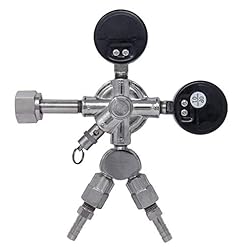 This Pro Series dual-output double gauge regulator is loaded with high end features! If you plan on dispensing two separate kegs but do not need to have independent keg pressures, then this regulator will work for you. This regulator has a Y Splitter with two independent shut off valves, so you can still run a single keg if you want to. The pressure adjustment knob can be turned by hand so it does not require tools. It also features a pressure release valve so you can release pressure from the system at the regulator. This is great a great feature if you have a keg coupler that does not include a pressure release valve.