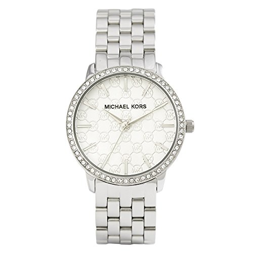 The stainless steel Michael Kors Nini watch is polished perfection. The pave bezel and quilted logo dial add up to a glamorous, wear-with-everything timepiece.