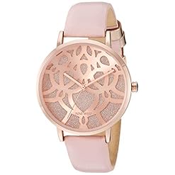 Slightly domed mineral crystal lens; two layer rose gold-tone sunray and glitter dial with cutout pattern; rose gold-tone hands and markers