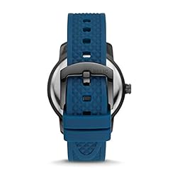 This 41mm Sanger watch features a black dial, three-hand day-date movement and a blue silicone strap.