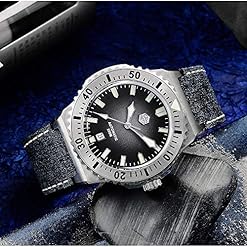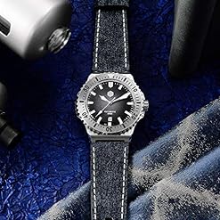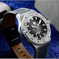 Model: SN0055-G Movement: PT5000/SW200-1 [Automatic mechanical movement] Case: Material – 316L Stainless Steel 44 mm in diameter Length 50 mm Thickness 13mm Band width 18 mm Glass: Sapphire Crystal Bubble Conves Glass, Swiss AR Coating Bezel: 120 Clicks ,316L Stainless Steel Bezel, 12 O’clock Luminous Markers Dial Color: Gradient Gray Fire Pattern Dial, 3D Hexagon Applique Logo, Hands: GS Crafts Hands, Luminous Coating Luminous: BGW-9 Blue Light Crown: Screw-down Crown, Case Back: 316L Stainless Steel Solid Screw-down Case Back Strap: French BOX Frosted Leather + French HAAS Waterproof Lining Leather Clasp: 316L Stainless Steel Buckle Water Resistant: 20Bar=200 meters Weight: about 110g