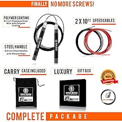 KILL IT QUALITY – Premium grade, 360-degree ball bearings? Check! Silicone, anti-slip grips? Done! Awesome extras? You got it! We designed the Sonic Boom M2 to be the best Crossfit jump rope from top to bottom, and them some. Get smooth spinning, super fast rotation in your crossrope, a FREE carrying case, and a FREE online training course (sells for $15.97) to unleash your inner speed demon.